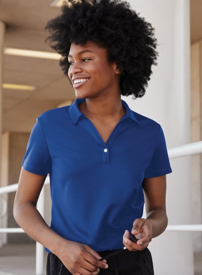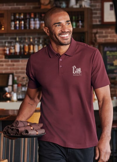Our #1 performance tee fabric—offered in a color-locking, moisture-wicking polo—to expand your uniforming options.